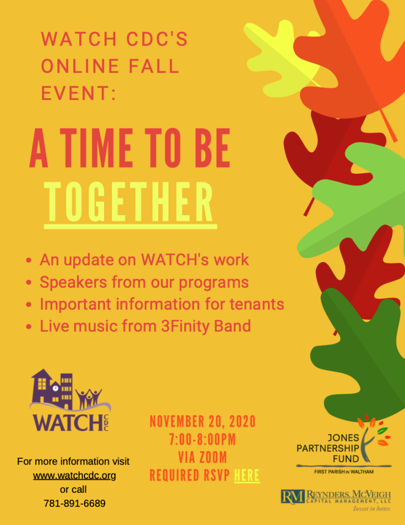 WATCH CDC’s online fall event “A Time to be Together” will be held on November 20th from 7 to 8pm. Join us as we enjoy “A Time to be Together!”. RSVP is required to attend the event. RSVP here WATCH CDC’s evento virtual de otoño “Un tiempo para estar juntos” se celebrará el 20 de noviembre…