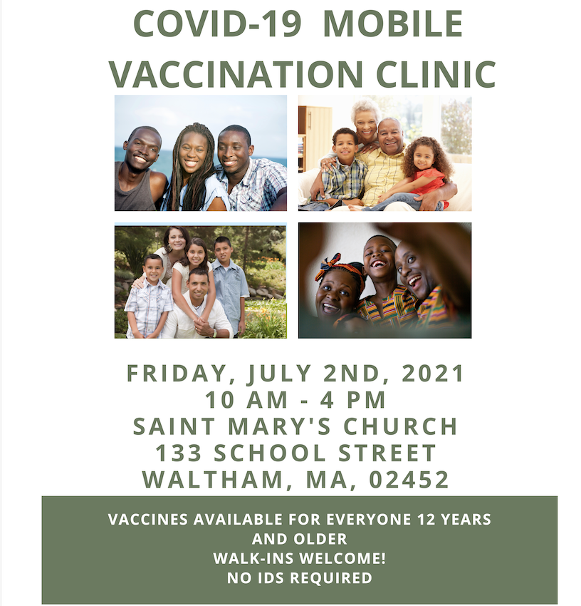 COVID-19 Mobile Vaccine Clinic in Waltham Friday July 2, Clinica Movil de vacunas en contra del COVID19