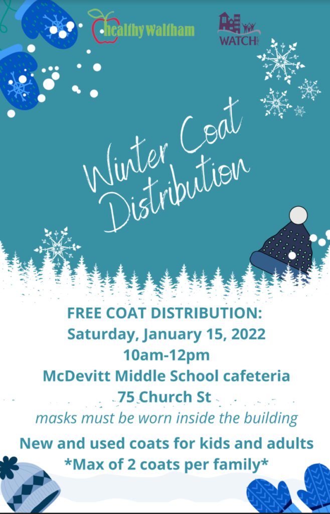 COAT DISTRIBUTION: Saturday, January 15, 2022, McDevitt Middle School Parking Lot 75 Church St 10am-12pm New and used coats for kids and adults *Max of 2 coats per family* DISTRIBUCIÓN DE ABRIGOS: Sábado, 15 de enero de 2022 Parqueo de McDevitt Middle School 75 Church St 10am-12pm Abrigos nuevos y usados para niños y adultos *Máximo de…