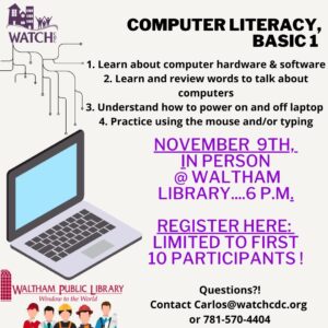 To learn more contact Carlos carlos@watchcdc.org 781-570-4404, se habla español.