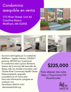 Para más información, póngase en contacto con Daria en daria@watchcdc.org o visite https://tinyurl.com/172RiverStUnitA6