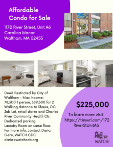Contact Daria at daria@watchcdc.org to learn more or visit here https://tinyurl.com/172RiverStUnitA6
