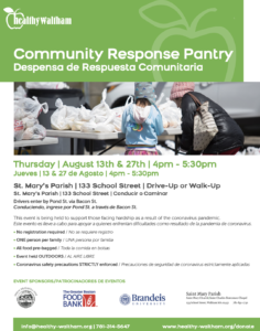 Recursos de Comida Gratis en Waltham del 10 Agosto al 16 Agosto, 2020
